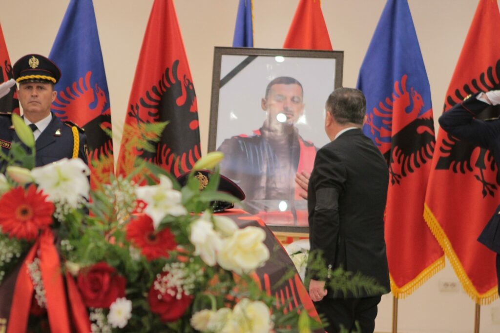 Ministri i Brendshëm i Shqipërisë, Taulant Balla, mori pjesë në ceremoninë e përcjelljes për në banesën e fundit të punonjësit të policisë së forcave Shqiponja në Fier Novruz Cenalia, i cili u vra para dy ditësh me armë zjarri nga Azgan Mërnica, i cili është shpallur në kërkim.