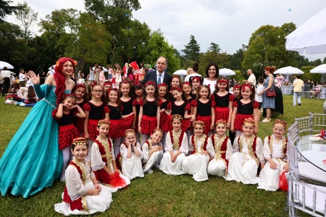 Nën tingujt e gëzueshëm të festës, qindra tullumbace u lëshuan në qiell nga të vegjlit si shenjë e ngritjes lart të ëndrrave fëmijërore.