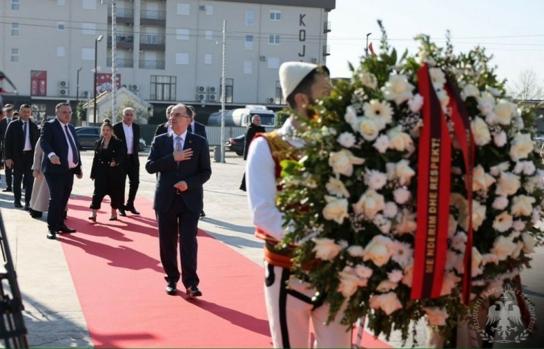 Presidenti Begaj vendosi një kurorë me lule në monumentin e Skënderbeut, të vendosur në këtë shesh më 28 Nëntor të vitit të shkuar për festën e flamurit dhe u përshendet me qytetarët.