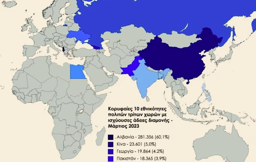 Të dhënat e Ministrisë greke të emigracionit dhe Azilit për tre muajt e parë të vitit 2023 flasin se numri i qytetarëve shqiptarë me lejeqëndrimi në Greqi, në muajin mars të këtij viti ishte rreth 281 mijë, të cilët përbëjne 60.1 % të të huajve me lejeqëndrimi të rregullt në këtë vend.
