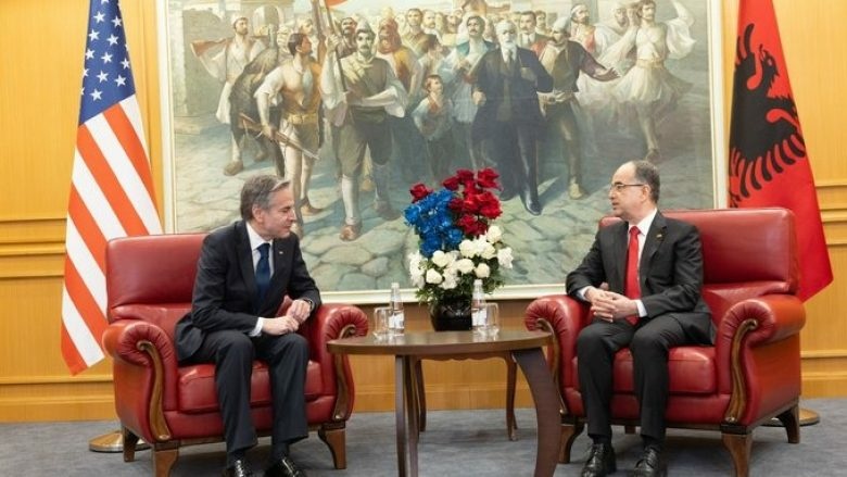 Sekretari Antony J. Blinken dhe presidenti shqiptar Bajram Begaj para takimit të tyre