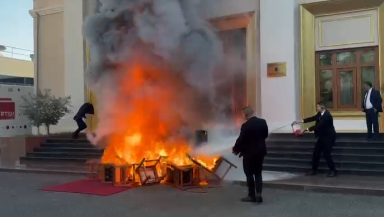 Deputetët e Partisë Demokratike ndërmorën aktin ekstrem me djegien e karrigeve jashtë Kuvendit të Shqipërisë.