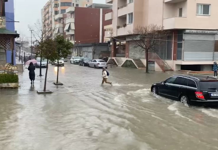 Rrugët janë bllokuar nga uji duke paralizuar përkohësisht lëvizjen e qytetarëve dhe automjeteve.