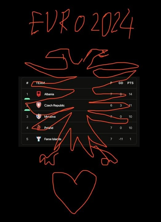 Rama ka ndarë renditjen e tabelës së grupit në të cilën është Shqipëria, ku tashmë është liderë e grupit.
