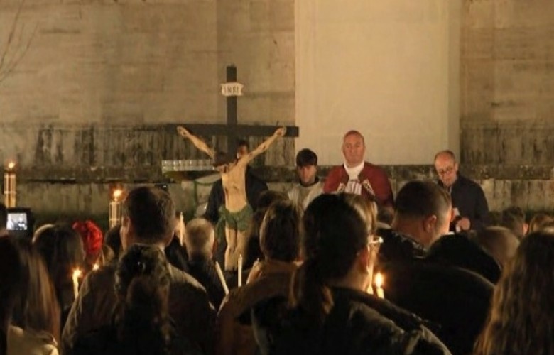 Besimtarët katolikë kanë kremtuar mbrëmjen e së premtes në sheshin “Nënë Tereza” ritin e shenjtë “Udha e Kryqit” në drejtimin e imzot Arjan Doda.