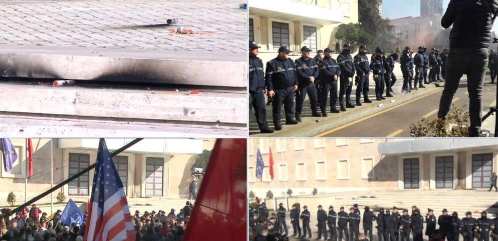 Momente pikante janë kapur gjatë protestës së opozitës, ku mes zhurmës së kapsollave dhe flakadanëve, vjen dhe një tjetër moment.