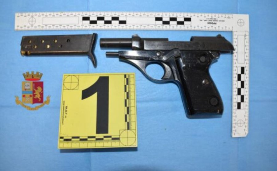 Policia italiane goditi një bazë të dyshuar të një organizate kriminale shqiptare në Prato të Italisë, ku u sekuestruan pesë pistoleta, municione, dokumente të falsifikuara dhe rreth 30 mijë euro cash.