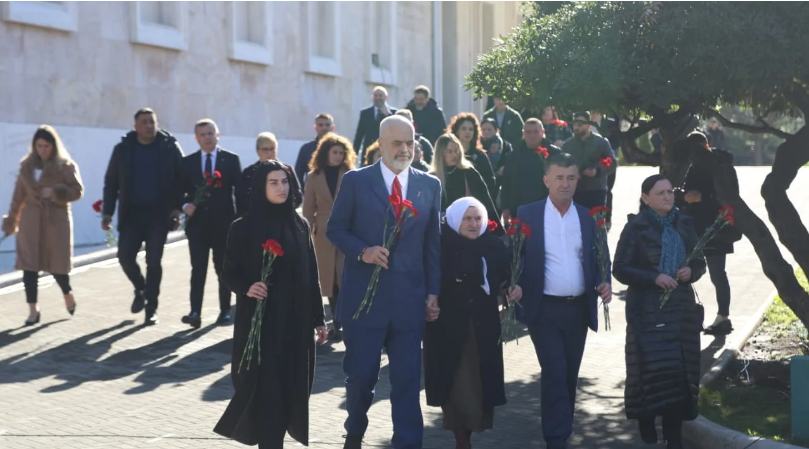 Pas fjalës që mbajti në kryeministri dhe ku bëri thirrje për zbardhjen e “krimit shtetëror”, Edi Rama dhe familjarët zhvilluan homazhe në Bulevardin ‘Dëshmorët e Kombit’ në kujtim të viktimave të 21 janarit.