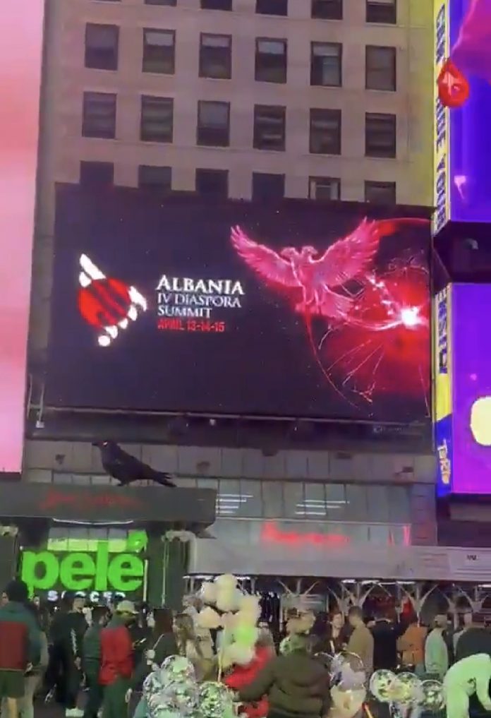 Ministri për Evropën dhe Punët e Jashtme, Ferit Hoxha ndau në rrjetet sociale pamje nga sheshi “Times Square” ku është shfaqur në monitor videoja promovuese e Samitit të Diasporës që mban moton “Përmes rrënjëve lartësohemi”.
