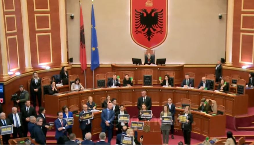 Nën vërshëllimat e bilbilëve, deputetët bllokuan punimet e Kuvendit duke e bërë të pamundur zhvillimin e një seance normale.