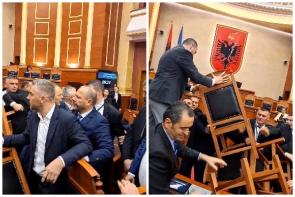 Deputetët e opozitës së Shqipërisë u përplasën fizikisht me Gardën, të cilët tentuan t’i ndalonin të bllokonin me karrige foltoren e Kuvendit.