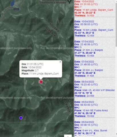 Kjo lëkundje është pasuar nga një tjetër më e lehtë, 2.7 ballë, në orën 01:31. Epiqendra ka qenë po në lindje të Bajram Currit në Tropojë.
