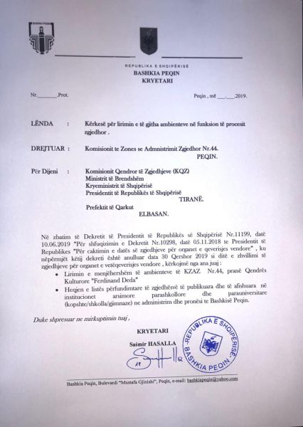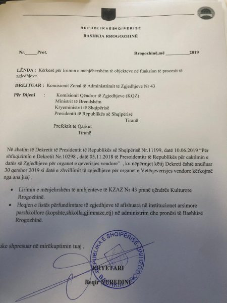 Bashkia e Rrogozhinës dhe e Peqinit i janë drejtuar me një letër Komisionit Qendror të Zgjedhjeve, që të lirojnë ambientet publike të administruara nga KZAZ-të (Komisionet Zonale të Administrimit të Zgjedhjeve).