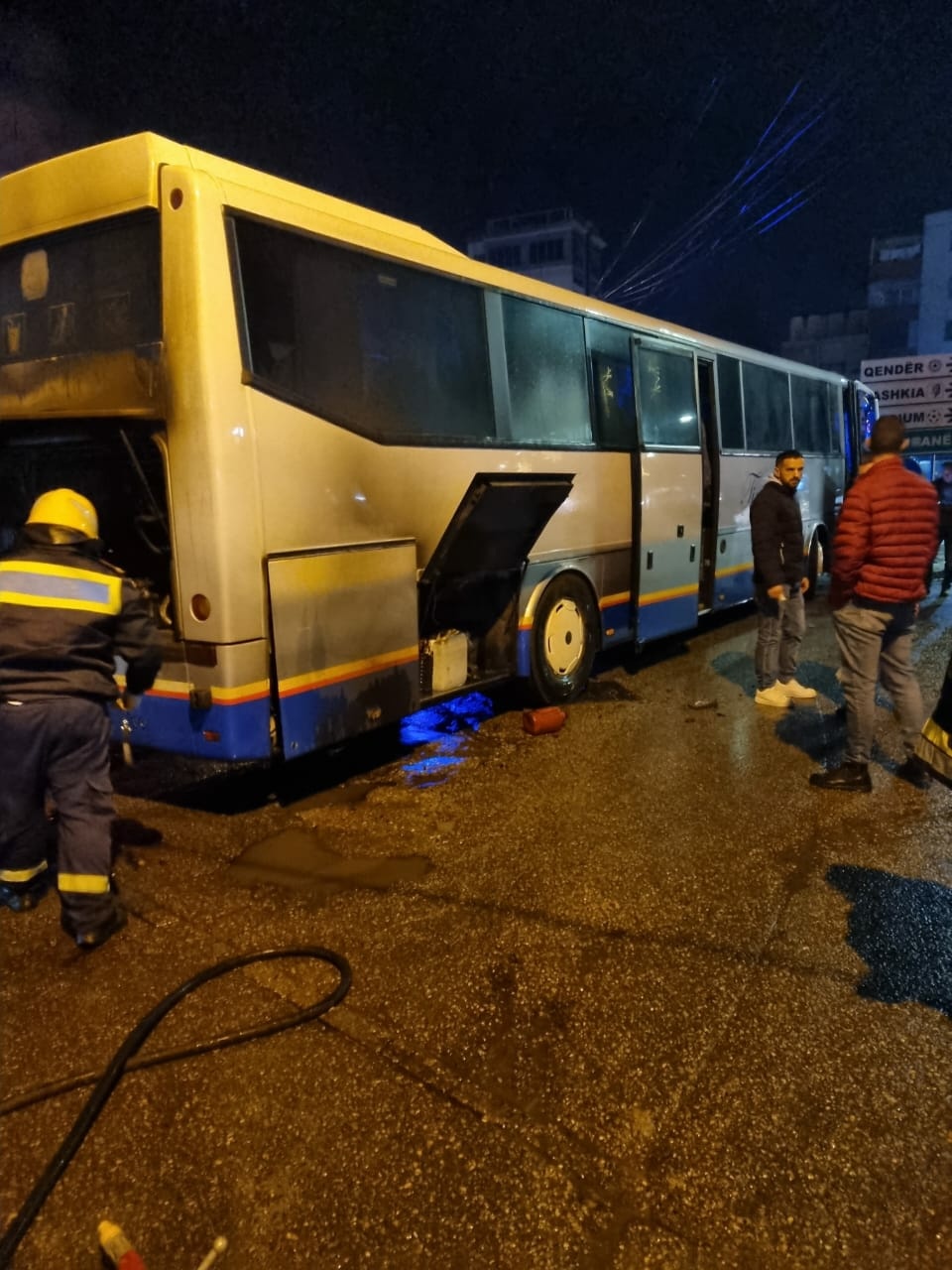 “Rreth orës 18:00, në aksin rrugor “Bradashesh-Elbasan”, dyshohet se për shkak të një defekti, ka rënë zjarr në pjesën e pasme të autobusit me drejtues shtetasin O. K., 28 vjeç, banues në Elbasan. Për pasojë janë shkaktuar vetëm dëme materiale”, thuhet në njoftimin e policisë.