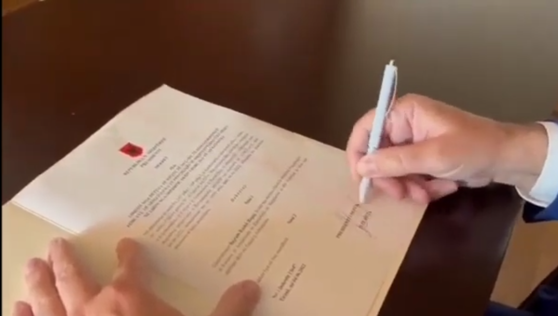 Ilir Meta firmosi LIVE nga Stambolli dekretin për lirimin nga detyra e ushtarakut të Bajram Begajt duke i hapur kështu rrugën drejt votimit pasditen e sotme në Parlament si President i Republikës së Shqipërisë.