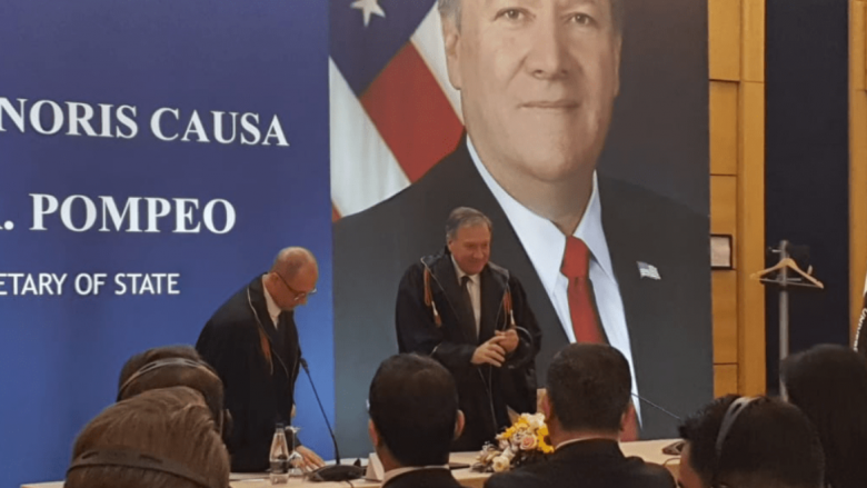 Mëngjesin e sotëm, ish-sekretari amerikan i shtetit, Mike Pompeo mori titullin “Honoris Causa” nga Universiteti i Tiranës.