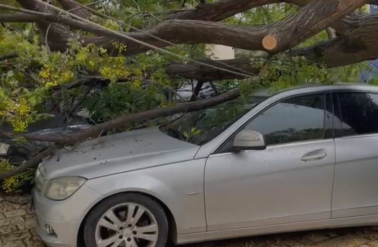 Në Shkodër një pemë është rrëzuar për shkak të erës së fortë dhe ka rënë mbi disa automjete në qendër të qytetit. /euronews.al/