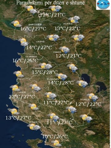 Moti do të nisë me kthjellime e gradualisht në mesditë e pasdite vranësirat do të vijnë në dendësim. Gjatë këtyre orëve në zonat malore e kodrinore reshje shiu e shtrëngata.