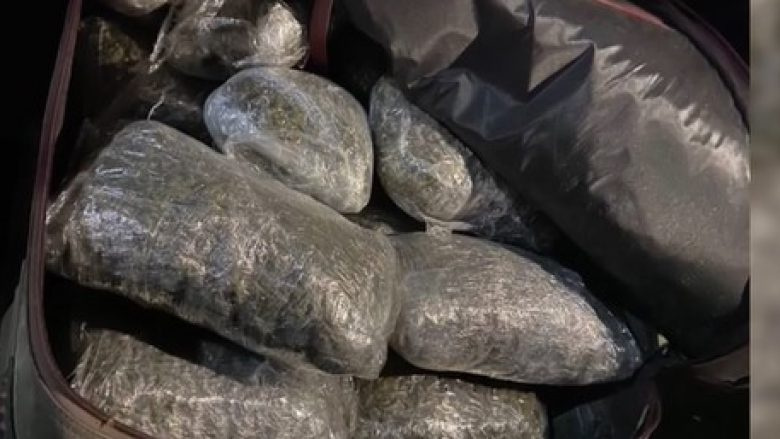 Gjatë kontrollit në automjet, në një valixhe, Policia gjeti 16 pako të mbushura me lëndë narkotike cannabis sativa dhe një qese plastmasi të mbushur po me lëndë narkotike cannabis sativa, me peshë totale 17 kilogramë, të cilat u sekuestruan në cilësinë e provës materiale, së bashku me automjetin dhe tre aparate celulare.