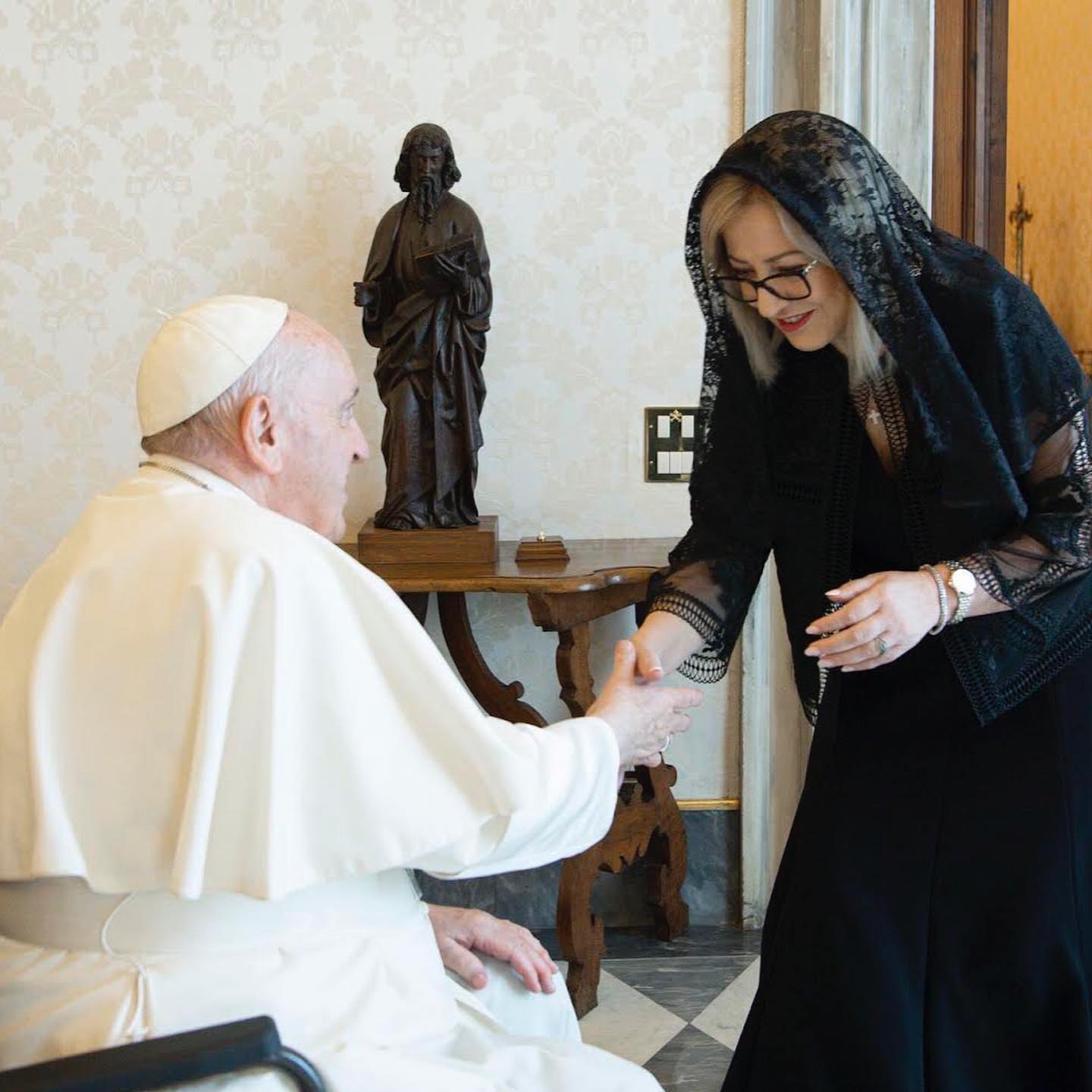 Kryetarja Nikolla e falënderoi Atin e Shenjtë për audiencën dhe e njohu atë me situatën në Shqipëri, vlerat dhe aspiratat evropiane të popullin shqiptar dhe shprehu mirënjohjen e thellë të besimtarëve katolikë dhe të gjithë qytetarëve për përkushtimin e Atit të Shenjtë ndaj Shqipërisë e shqiptarëve.
