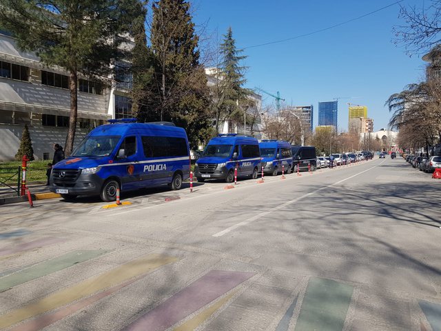 Ata janë lokalizuar me furgonë të blinduar përreth kryeministrisë dhe te TVSH-ja në pritje të protestës.