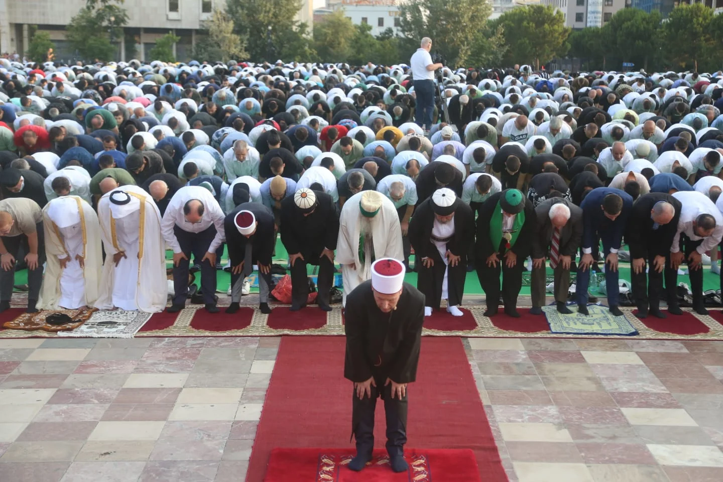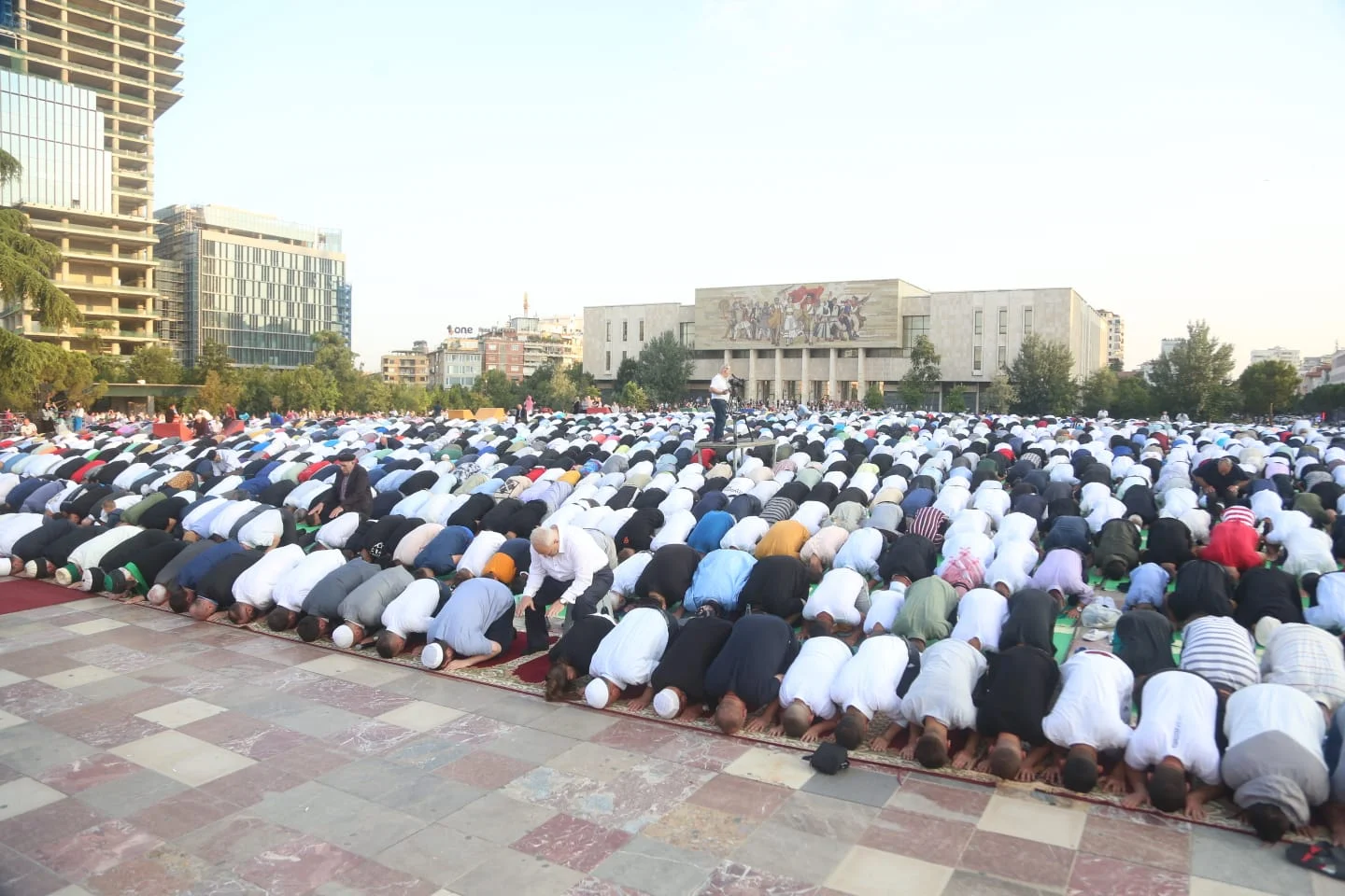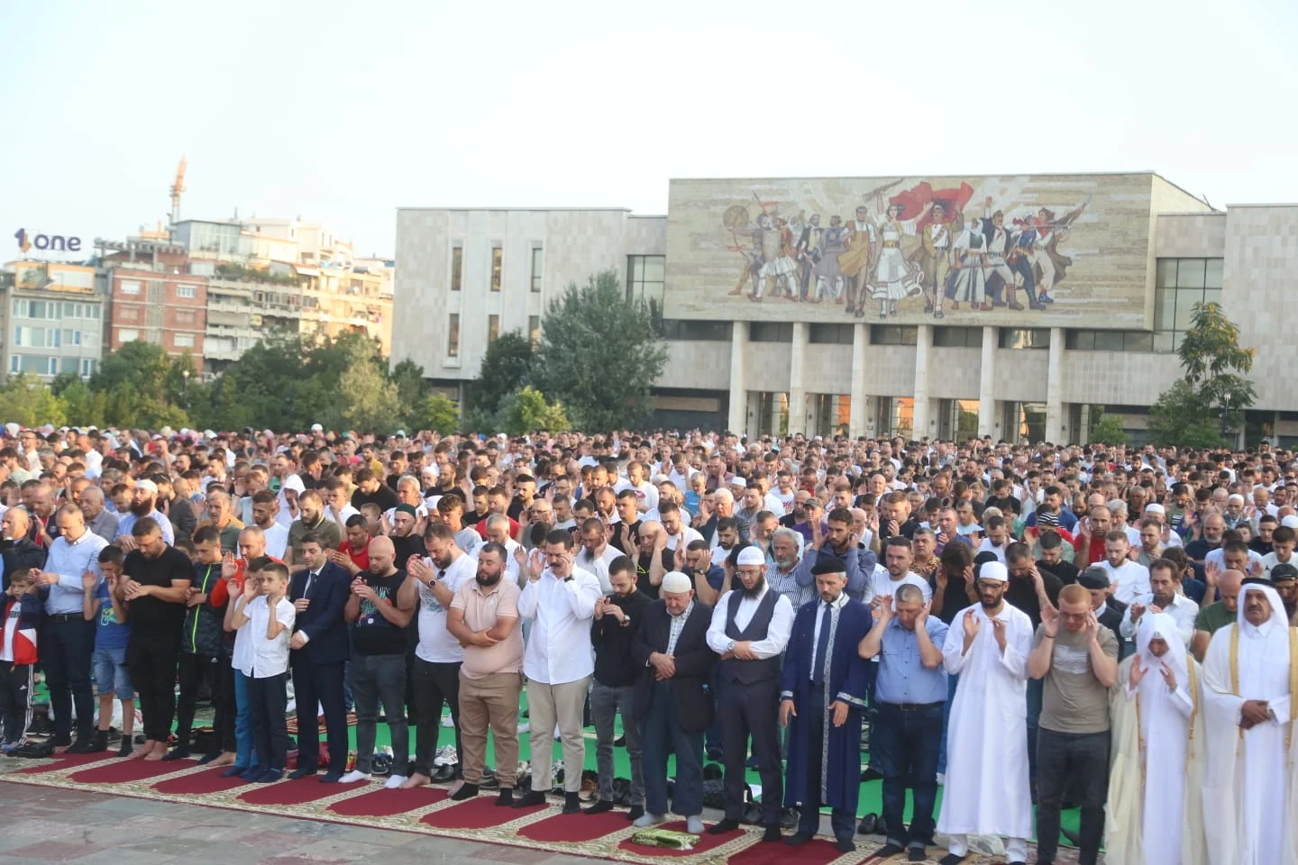Mijëra besimtarë u mblodhën sot në sheshin ‘Skëndërbej’ në Shqipëri për faljen e namazit të Kurban Bajramit në orën 06:00.