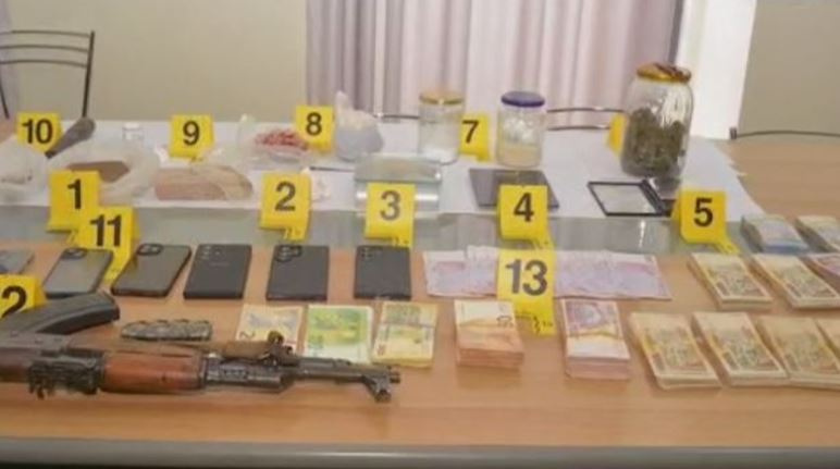 Ndërkohë si rezultat i operacionit në banesa dhe lokale janë gjetur dhe sekuestruar, lëndë narkotike të llojeve të ndryshme, një armë zjarri tip automatik dhe municion luftarak, 51 milion lekë, 15 mijë euro dhe disa franga zvicerane, shkruan Abcnews.al, transmeton Klankosova.tv.
