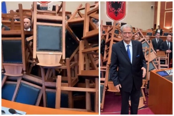 Situata jonormale në Parlament ka detyruar deputetët e mazhorancës të qëndrojnë në këmbë duke qenë se karriget e tyre ishin përmbysur pranë foltores. /euronews/