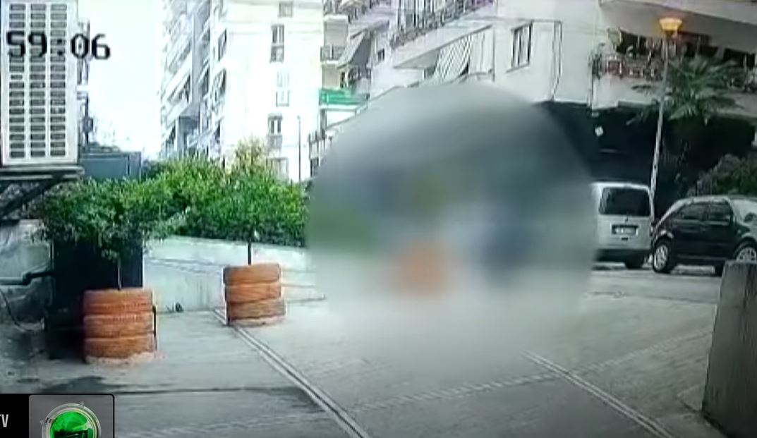 Kamera e sigurisë të një biznesit tregojnë policin të shtrirë përtokë.