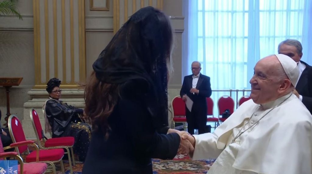 Papa Françesku mirëpriti në një ceremoni të veçantë trupin diplomatik të akredituar në Vatikan. Pjesë e takimit ishte edhe ambasadorja e Shqipërisë Majlinda Frangaj, e cila pati një shtrëngim duarsh me Atin e Shenjtë.