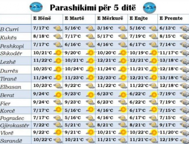 Temperaturat do të jenë në ulta gjatë orëve të mëngjesit dhe të mbrëmjes por në mesditë orët me diell do të sjellin temperatura optimale.