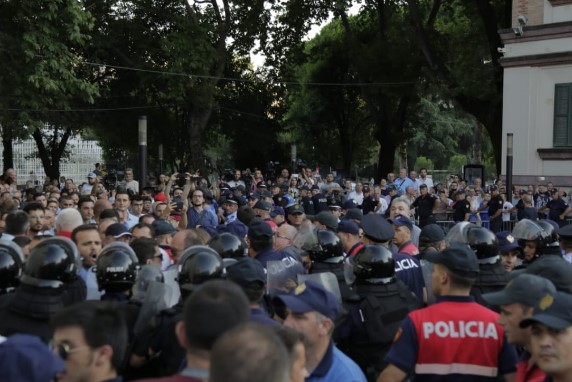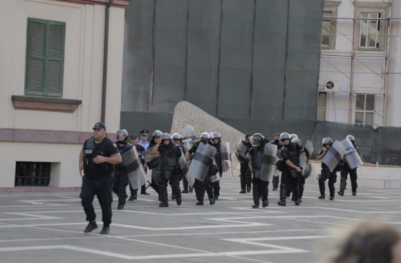 Situata është tensionuar mjaftueshëm për disa instante teksa pranë forcave të policisë janë afruar dhe disa njësi të forcave të ndërhyrjes së shpejtë, të pajisur me skafandra dhe shkopa gome.