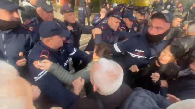 Mbështetësit e ish-kryeministrit të Shqipërisë, Sali Berisha janë përplasur me gardën në Kuvend, në përpjekje për të çarë kordonin e policisë.