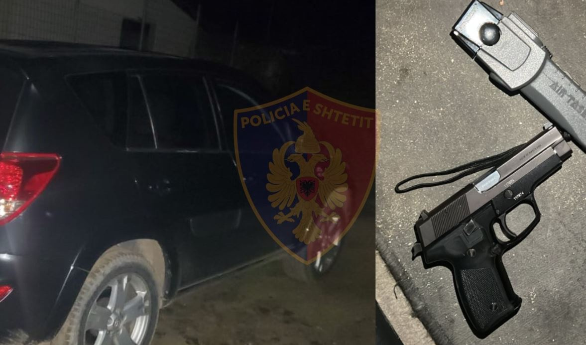 Në njoftimin zyrtar të policisë thuhet se është sekuestruar automjeti i autorit, një armë zjarri pistoletë, 1 krehër, 12 fishekë, pistoletë paralizuese dhe municion luftarak.