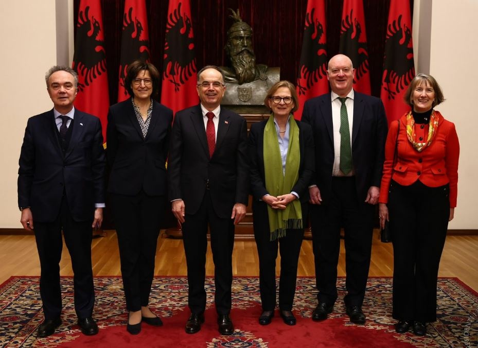 Presidenti i Republikës së Shqipërisë, Bajram Begaj, priti sot në një takim përfaqësuesit e shteteve të QUINT-it në OSBE: Ambasadoren gjermane, Susanne Schütz, Ambasadorin britanik Neil Holland, Ambasadoren e Francës, Fatène Benhabylès-foeth, Ambasadorin italian, Stefano Baldi dhe Zëvendësambasadoren amerikane, Katherine Brucker.