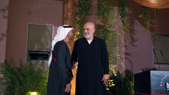 Presidenti i Emirateve të Bashkuara Arabe, Sheikh Mohammed bin Zayed Al Nahyan u prit nga Kryeministri i Shqipërsë, Edi Rama në ambientet e Kryeministrisë ku u dekorua me Urdhrin e Madh me Yll të Mirënjohjes Publike, një vlerësim i lartë shtetëror për përkushtimin e tij të palëkundur ndaj marrëdhënies strategjike mes dy vendeve si dhe kontributin e pakrahasueshëm në kauzën globale të paqes.