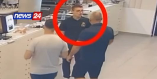 Siç duket dhe nga pamjet, dy personat i janë afruar kamarierit duke i kërkuar llogari se pse kishte çuar në tavolinë një shishe ujë më tepër se sa kishin kërkuar ndërkohë, raporton News24