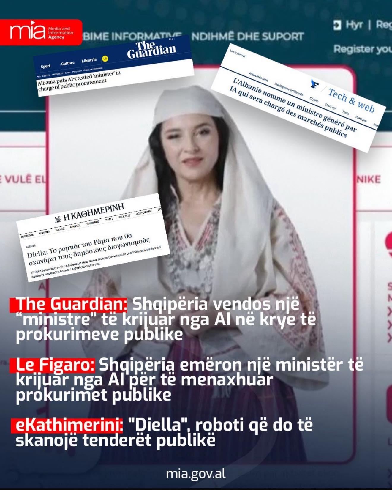 “DIELLA, Ministrja e Shtetit për Inteligjencën Artificiale ka pushtuar gazetat e botës”, ka shkruar Rama.