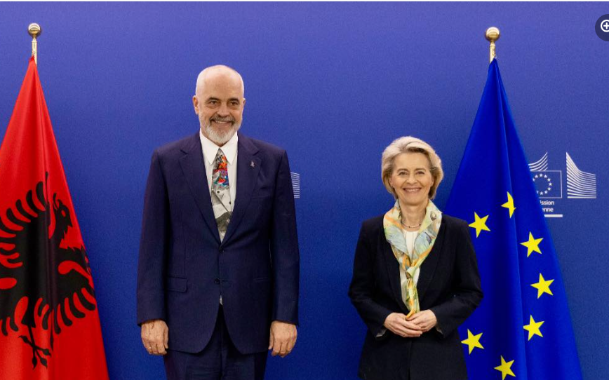 Kryeministri i Shqipërisë, Edi Rama gjatë qëndrimit në Bruksel është takuar me Presidenten e Komisionit Evriopian, Ursula von der Leyen.