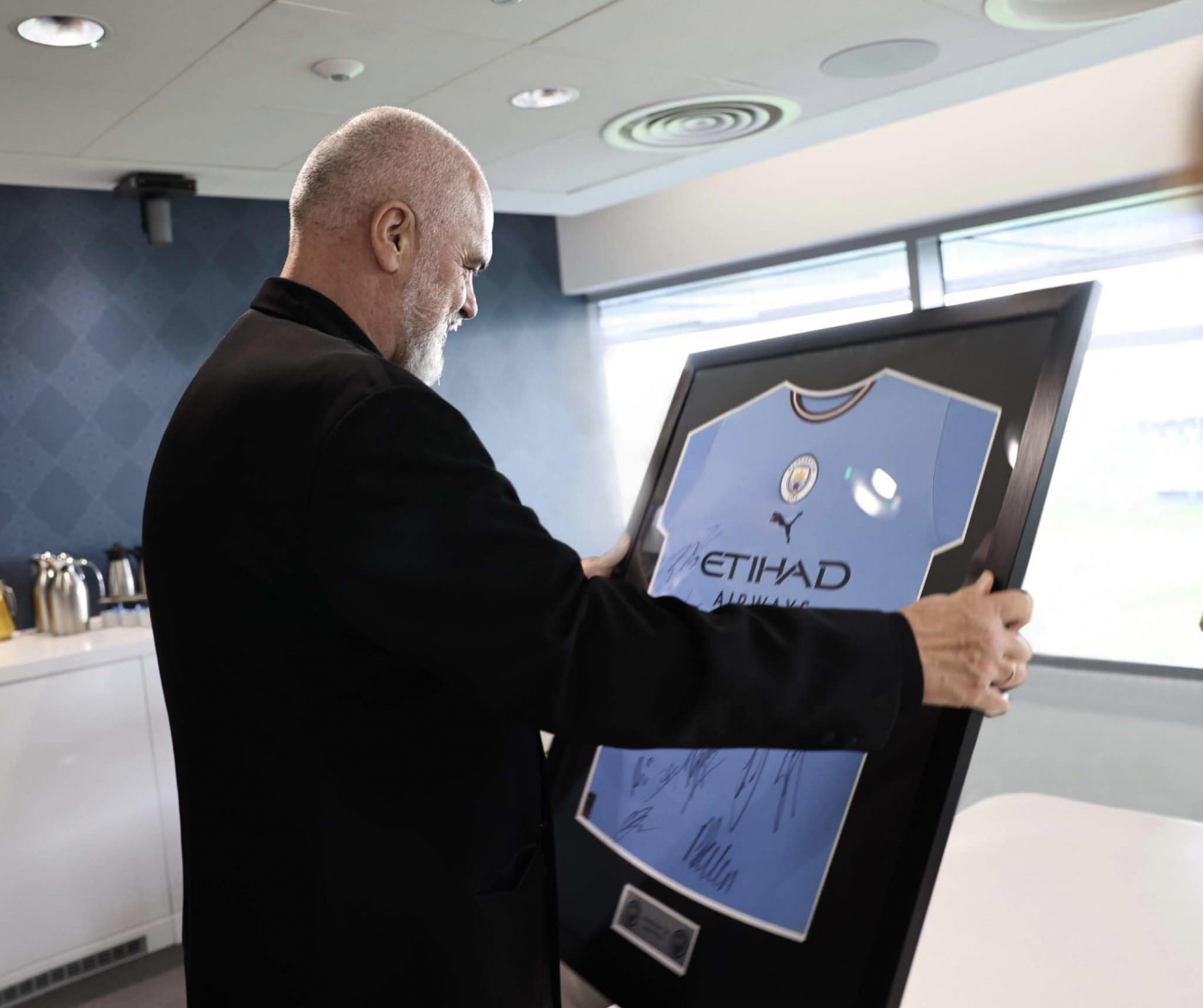 Kryeministri i Shqipërisë, Edi Rama ka publikuar këtë mëngjes foto nga zyrat e skuadrës angleze të futbollit Manchester City.