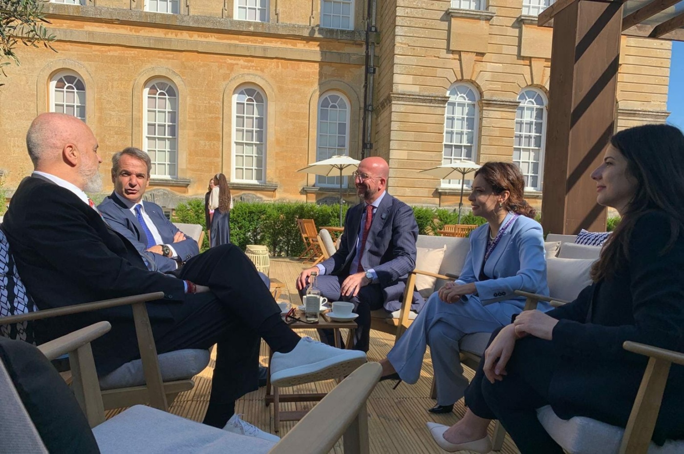 Në margjinat të Samitit të Komunitetit Politik Europian, ministrja Spiropali ka ndarë në rrjetet sociale foto nga takimi që u zhvilluar në ambientet e jashtme të Blenheim Palace.
