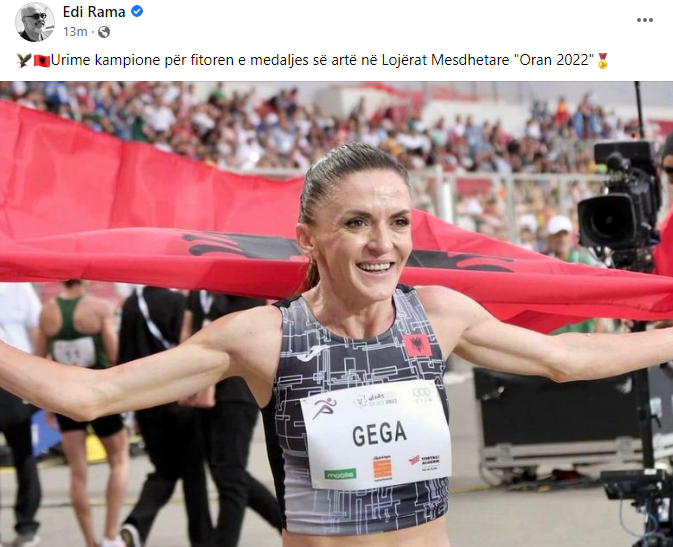 Kryeministri i Shqipërisë Edi Rama, ka uruar atletisten Luiza Gegan për fitoren e medaljes së artë në Lojrat Mesdhetare “Oran 2022”.