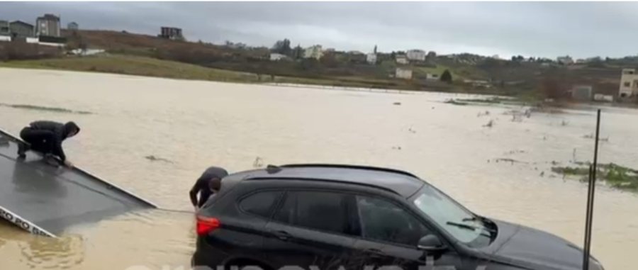 Siç shihet edhe në foto, automjeti ka mbetur i bllokuar, ndërsa po ndërhyhet me karrotrec.