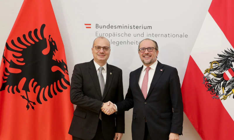 Ministri për Evropën dhe Punët e Jashtme të Shqipërisë, Igli Hasani, u prit në një takim nga Ministri për Punët e Jashtme të Austrisë, Alexander Schallenberg.
