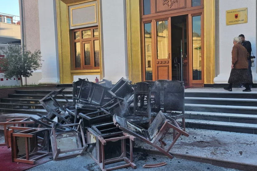 Deputetët opozitarë, gjatë seancës plenare të 30 shtatorit, nxorën jashtë sallës karriget e tyre dhe i dogjën para ndërtesës së Kuvendit.