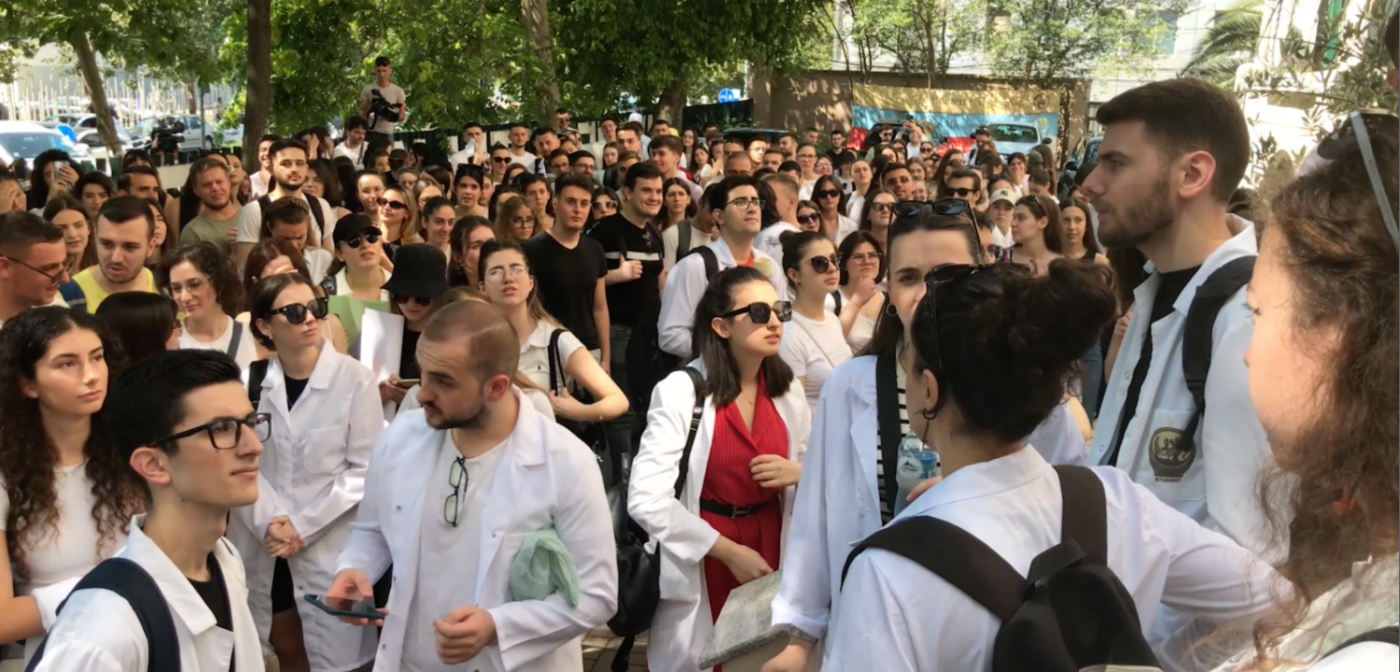 Studentët e mjekësisëe nisën protestën e tyre nga sheshi para universitetit të mjekësisë dhe marshuan për disa kilometra tek Kuvendi i Shqipërisë, ku shumica socialiste kaloi për shqyrtim me procedurë të përshpejtuar projekt-ligjin e miratuar dje nga qeveria.