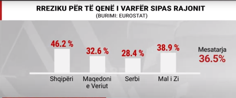 Teksa Shqipëria shënon rritje, shtetet e tjera të rajonit raportojnë vlera rënëse nga viti në vit, ku më pak të rrezikuarit për të qenë të varfër janë serbët.