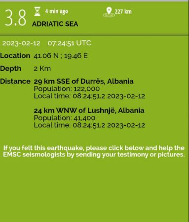 Një tërmet është regjistruar mëngjesin e sotëm në orën 08:24 në Shqipëri.