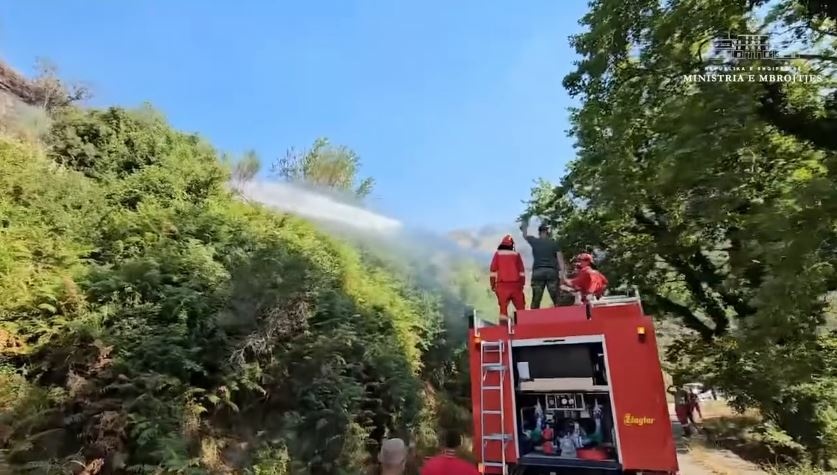 Zjarri në fshatin Zogaj, bashkia Tropojë për të cilin ditën e djeshme kanë punuar Forcat e Armatosura, strukturat vendore të mbështetura nga një Helikopter I KFOR. Vijojnë edhe ditën e sotme operacionin për vënien nën kontroll të zjarrit dhe shuarjen e tij.