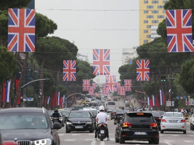 Me rastin e vizitës së sekretarit të jashtëm britanik Tirana është veshur me ngjyrat e flamurit të Britanisë së Madhe.